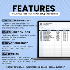 Increase efficiency and organization with our Real Estate CRM Template. This template, available in both Google and Excel formats, streamlines your data management process. Easily track leads, clients, and properties in one convenient location. Maximize your productivity and achieve success with our professional and reliable solution.